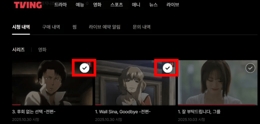 티빙을 꾸준히 사용하다 보면 시청기록이 빠르게 쌓입니다.