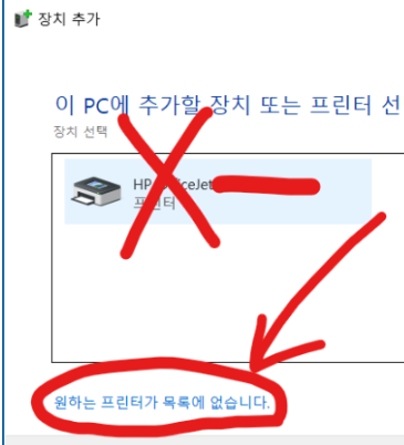 → 원하는 프린터가 목록에 없습니다 선택
